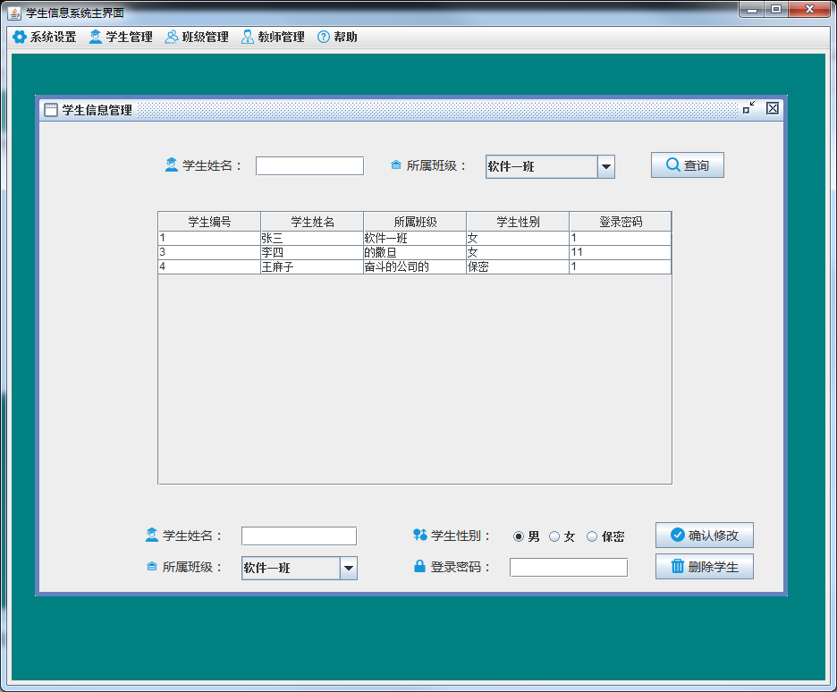 然后来看看学生信息管理,学生添加和学生查询修改删除: